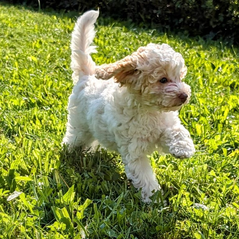 Wir geben in der Regel die Welpen mit ca neun Wochen ab. Unserer Erfahrung nach ist dies das beste Alter. Allerdings entscheiden wir immer individuell, manchmal macht es Sinn einen Welpen später abzugeben.